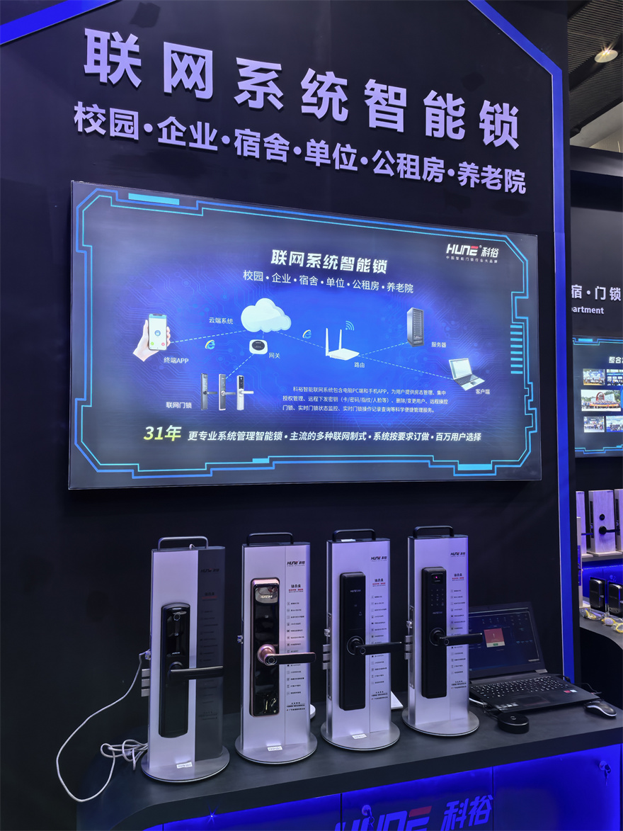 在數(shù)字高速發(fā)展的趨勢(shì)下,科裕31年堅(jiān)持創(chuàng)新發(fā)展,運(yùn)用物聯(lián)網(wǎng)技術(shù)推出聯(lián)網(wǎng)智能門鎖系統(tǒng),支持、LoRa、4G、NB、藍(lán)牙、WIFI、433等多種智能鎖聯(lián)網(wǎng)方案,實(shí)現(xiàn)了從酒店鎖到指紋鎖,到人臉識(shí)別鎖,再到聯(lián)網(wǎng)智能鎖的飛躍,以及智慧園區(qū)、智慧酒店、智慧公寓、智慧家居等各個(gè)場(chǎng)景解決方案。